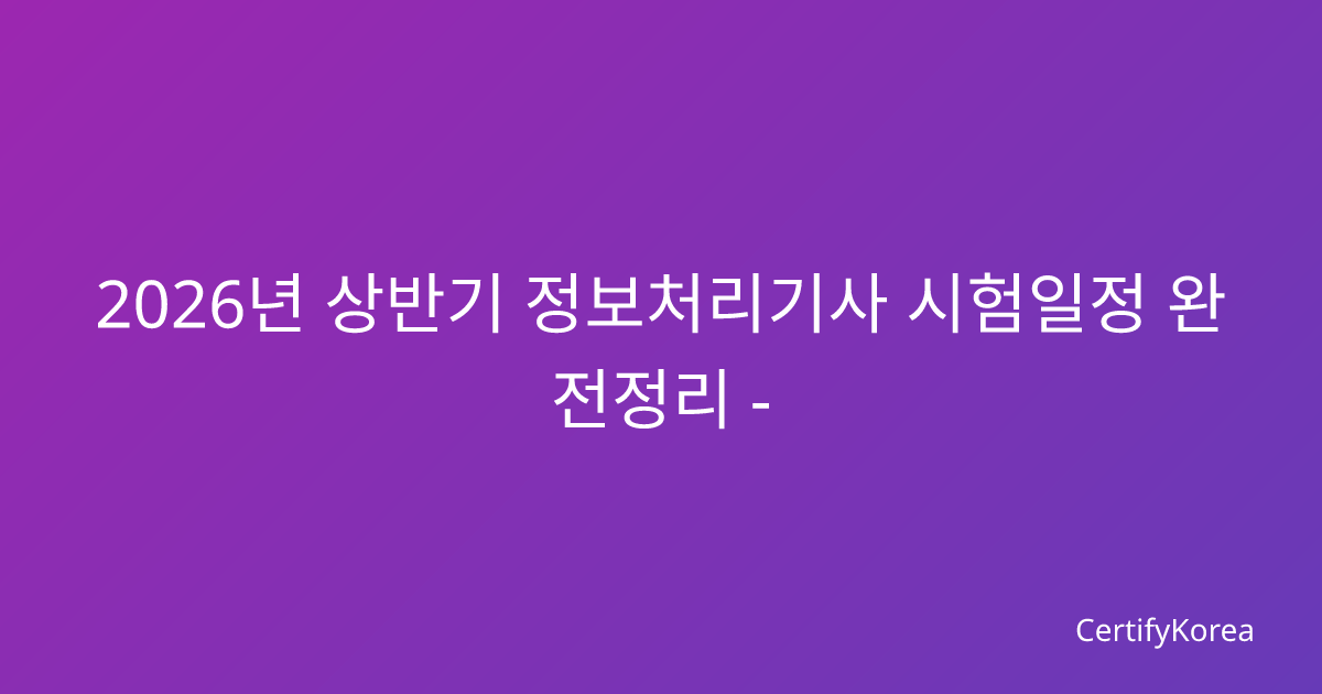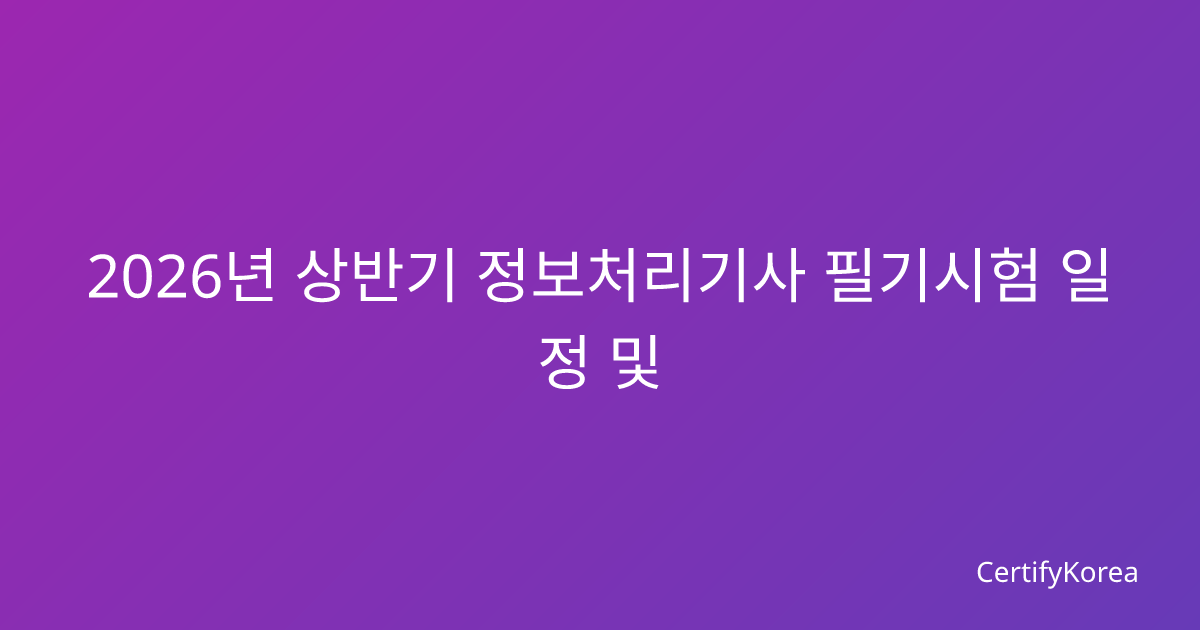 2026년 상반기 정보처리기사 필기 시험일정 2026년 상반기 정보처리기사 필기 시험일정이 한국산업인력공단을 통해 확정 발표되었습니다. 올해 상반기 시험은 총 2회 실시되며, 각 회차별 상세 일정은 다음과 같습니다.1회차 시험일정 – 원서접수: 2026년 1월 28일(화) ~ 1월 31일(금) – 필기시험: 2026년 3월 1일(토) – 필기 합격발표: 2026년 3월 14일(금)2회차 시험일정 – 원서접수: 2026년 4월 15일(화) ~ 4월 18일(금) … 더 읽기